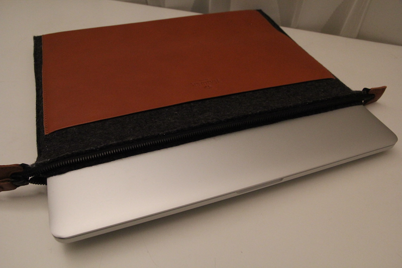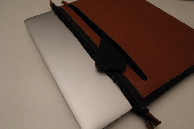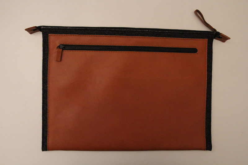 Il materiale che si trova a contatto con la custodia è feltro, che garantisce solidità e protezione ma allo stesso tempo essendo soffice evita di rovinare la superficie del computer; le tasche, invece, sono più sottili e più resistenti perché sono realizzate in ecopelle, più rigida, per evitare che penne o chiavi eventualmente conservate all’interno possano rovinare il computer. La pelle e disponibile in colore marrone oppure nera, più simile al colore del feltro sottostante.