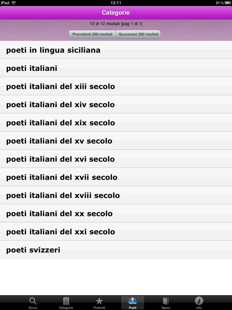 Nei “Poeti” c’è una vasta divisione in ordine di Secolo in cui sono vissuti i vari artisti della scrittura a partire dal XXIII secolo fino ai giorni nostri.