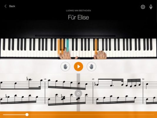 L’app è gratuita e contiene, gratis, le prime lezioni ed otto brani da provare per testarne tutte le funzionalità. L’app ci mostra lo spartito che andiamo a suonare, come note (nella parte inferiore) e come posizione delle mani (nella parte superiore dello schermo).