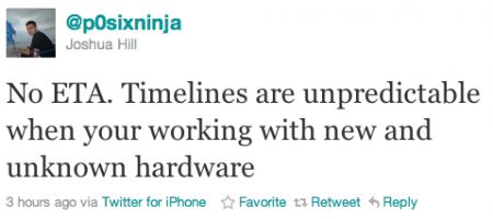 Queste dichiarazioni sono rivolte a rassicurare gli utenti che attendono il jailbreak di iPad 2, informandoli che i lavori proseguono ma si dovrà attendere ancora del tempo.