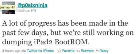 Molti progressi sono stati fatti negli scorsi giorni, ma stiamo ancora lavorando sul dumping della BootROM di iPad 2.