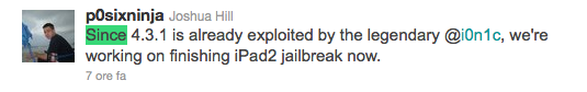 Dopo il Jailbreak di iOS 4.3.1 rilasciato per tutti i disposivi eccetto l'iPad 2, Joshua Hill del Chronic Dev Team...