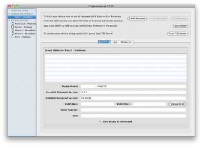 Questa nuova versione di TinyUmbrella aggiunge il supporto all’ultima versione di iOS, la 4.3.2, e sarà quindi possibile salvare il certificato SHSH di quest’ultima versione di iOS. Questa versione di TinyUmbrella supporta anche l’ultima versione di iOS degli utenti Verizon (che ricordo è disponibile solo negli Stati Uniti), cioè la 4.2.7.